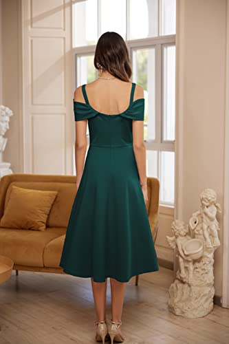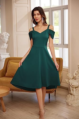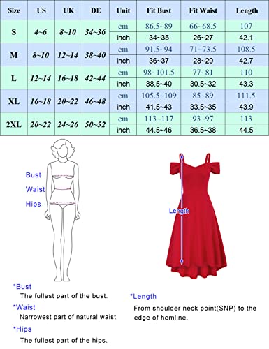 GRACE KARIN Damen Elegant Cocktailkleid V-Ausschnitt Spagehtti Träger Partykleid Schulterfrei High-Low Saum Faltenrock